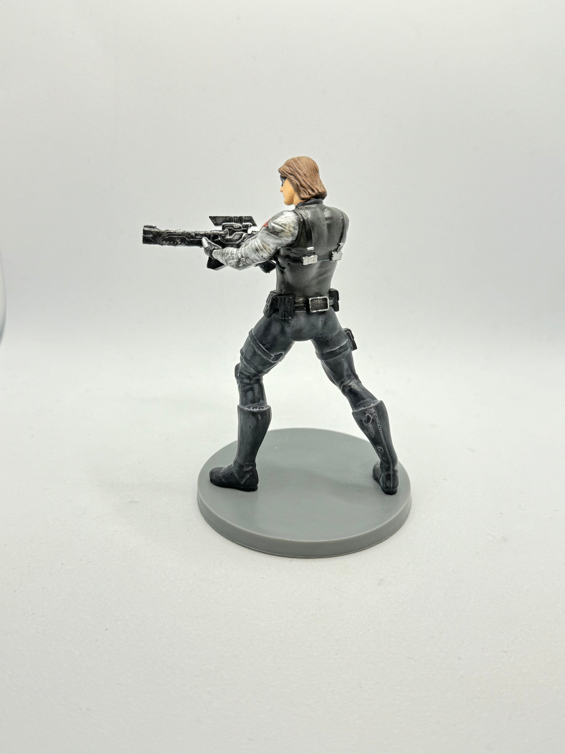 Bucky Barnes was best friend of Steve Rogers aka Captain America. Through a series of unfortunate events, Bucky became lost to Steve in the snowy Austrian Alps. Decades later Steve sees his friend again but as the Winter Soldier, brainwashed and controlled. This figure could represent friendship, healing, control, danger, protection, strength and more.